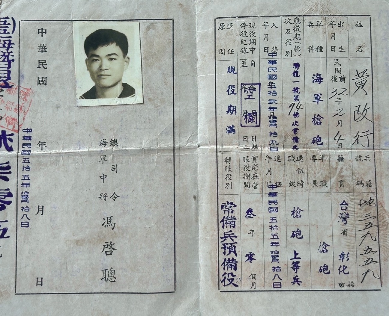 美造陽字號驅逐艦服役後,丹陽艦成為訓練艦,再也沒有出航,而黃政行也被轉調至山字號巡防艦華山艦,服役7個月後在民國55年10月光榮退伍。