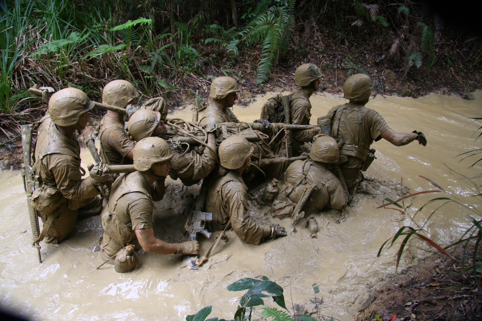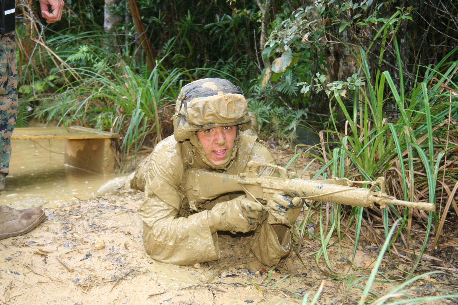 課程方面叢林訓練中心共劃分10處叢林訓練區和1處懸崖登陸區,訓練地區山高谷深、草長林密蟲蛇出沒,生存環境極其惡劣,再加上美軍陸戰隊特意設置的訓練環境,使訓練場所內有殺機四伏的感覺。舉例而言,最艱難的野外生存訓練課程長達12天,其中包括3天課堂教學,傳授野外吃、住、行動、自救及簡單中文等知識;接著為5天實際野外操作,受訓隊員不帶地圖、食品和飲用水,只携帶軍刀、軍用水壺和指南針進入陌生的訓練區,靠地物(捕食蛇蟲及挖掘植物根莖)維生,並且行軍到達指定的目標地點;最後4天為伏擊,學員全付武裝行軍,但要躲避教官的追擊,過程中還有凶神惡煞般的虐待,造成學員心理上亟大的壓力。完成其他機動穿越、峭壁繩降、戰術進攻、傷員救護等系列課目後,學員最後必須完成全副武裝鑑測、通過總長6.4公里、涵蓋18項考核項目的叢林障礙越野行軍,才算正式完訓。美軍認爲,叢林作戰不同于其他戰鬪,對抗的重點是人的作戰技能和生存意志,而不是單兵裝備的比較。
